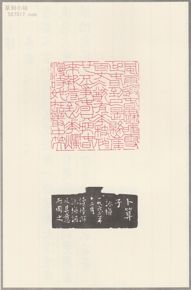 韩登安从艺六十余年,篆刻以浙派为根基,博采众长,其多字章、细朱文堪称一绝。1933 年,他由王福庵举荐加入西泠印社,此后在印社的发展中发挥了重要作用。而这部《韩登安篆刻毛主席诗词三十六首》,创作于 1962 年春至 1963 年夏,虽是特定时期的作品,却集中体现了他平生的功力。