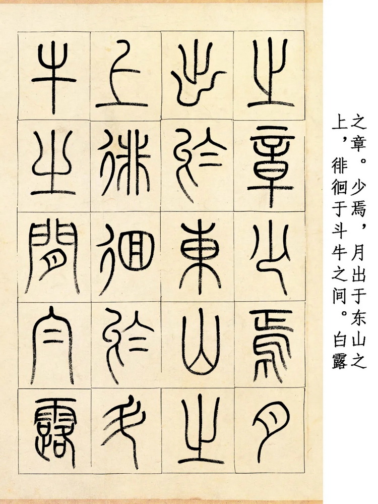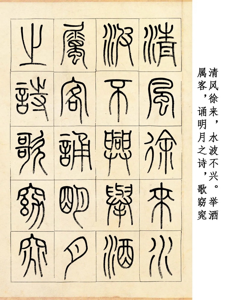 小篆,作为中国古老的书体之一,以其圆润流畅的线条、严谨规整的结构闻名。而这版小篆《赤壁赋》,更是将这些特点发挥到了极致。细细欣赏,每一根线条都似游龙摆尾,婉转自如,既有力量感,又不失柔美;每一处结构都严谨对称,规整得让强迫症都忍不住拍手叫绝,却又在细微之处暗藏变化,充满灵动之美。