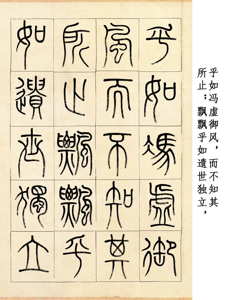 当文字与篆书完美融合,更是产生了奇妙的化学反应。读到 “水波不兴”,眼前曲曲折折的线条仿佛化作了江面上荡漾的涟漪,带着潺潺的涛声,在纸间流淌;看到 “水光接天”,错落有致的结构瞬间勾勒出一幅天水相接、浩渺无垠的壮阔画面,让人仿佛身临其境;尤其是 “羽化登仙” 四字,飘逸灵动的弧线宛如仙人的衣袂,带着超凡脱俗的仙气,好似真的要冲破纸面,带着我们飞向那九霄云外,感受一番 “遗世独立” 的逍遥。