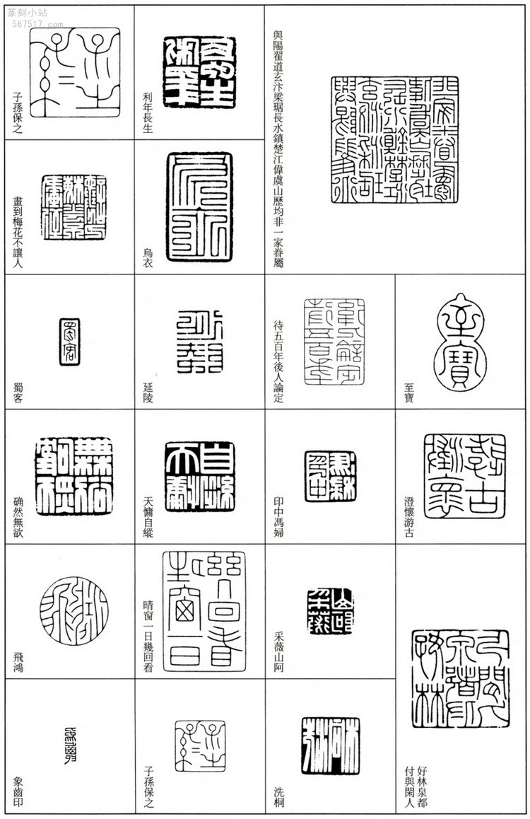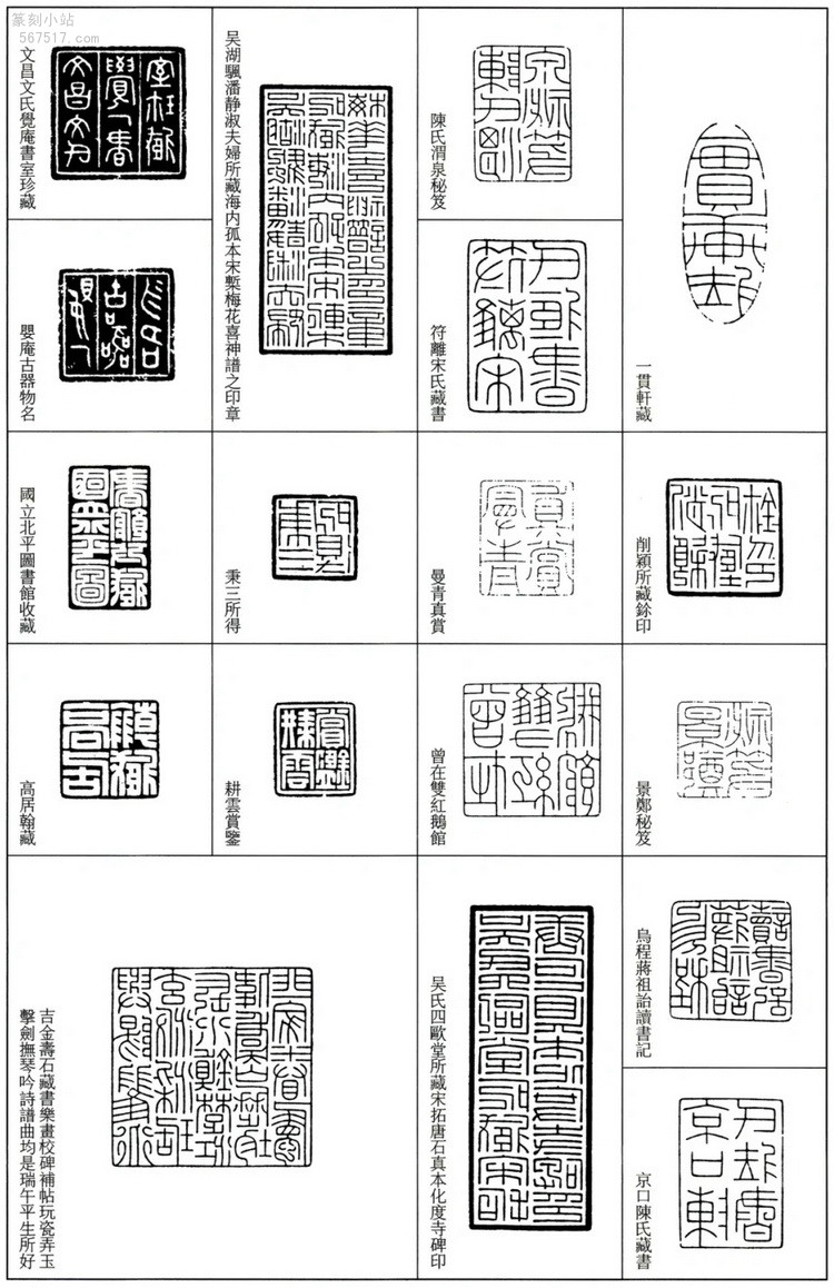 布局精妙:如 “吴湖帆潘静淑珍藏印” 稿中,对 “湖”“潘” 等繁笔字巧妙压缩,对简笔字 “印” 变形处理,使全印疏密相生,浑然一体。