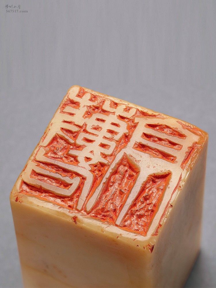 印章的珍贵首先源于材质的稀缺。寿山芙蓉石被誉为“石中之后”,与田黄石并称“印石三宝”,尤其老坑将军洞芙蓉石早已绝产,存世量极少。此印材质温润纯净、无砂质杂质,在大尺寸芙蓉石中实属凤毛麟角,西泠印社名誉社长韩天衡曾盛赞白芙蓉石“可与田黄石雄峙”,更显其价值。