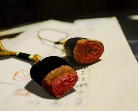一把刻刀游走于一枚如荔枝核的黑褐色果子,三五分钟,打磨修边,蘸上红印泥,极富禅意的坐佛像跃然纸上,再串上绳子,如吊坠般小巧精美,可随身携带,随手把玩。这就是篆刻小站金石家玩家文先生刻制而成的一枚缅茄印章。