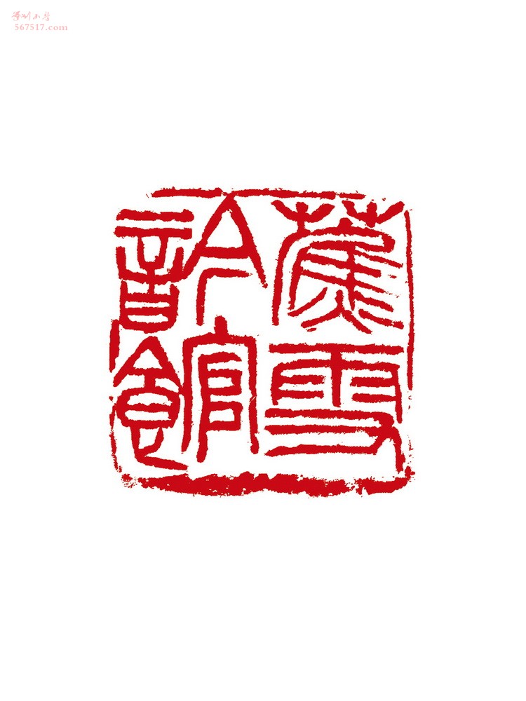 先说说这方印的“颜值”:印章尺寸是3.6×3.6×5厘米,印面刻的“蕉雪吟馆”四个字是朱文(也就是字是凸起的),走的是仿古代封泥的风格。吴昌硕把篆书的刚劲和书法的灵动结合得特别好,字的边角有方有圆,线条看着厚实却不笨拙。布局也很巧妙,四个字特意往上挪了挪,下方留了大片空白,再用一道宽厚的底边稳住整体,既活泼又稳重,还自带一种岁月沉淀的斑驳感。