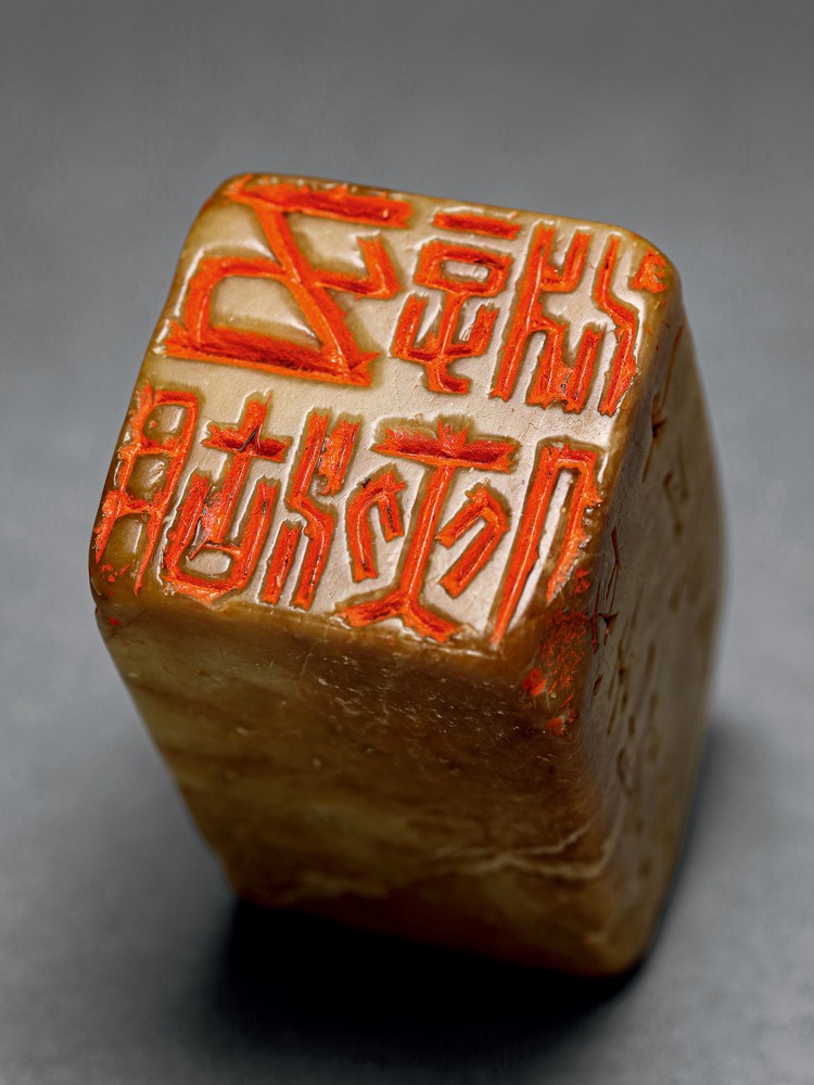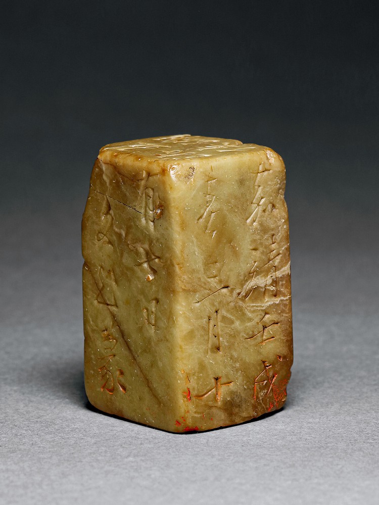 “五湖游侠”一印,尺寸为3.1×3.1×5.4厘米,印面四字,布局疏朗有致。印文“五湖游侠”四字,以汉印格局为基,融入了文彭特有的温润刀法。“五湖”二字笔画繁简相映,“游侠”二字则虚实相生,整体呈现出工稳雅致、清刚秀逸的气息。印文内容颇堪玩味,“五湖”暗合太湖一带的地理意象,“游侠”则寄托了明代文人尚武任侠、纵情山水的理想情怀,与文彭生长吴中、交游广阔的人生经历相呼应。