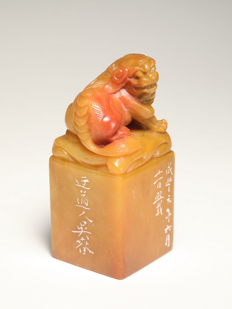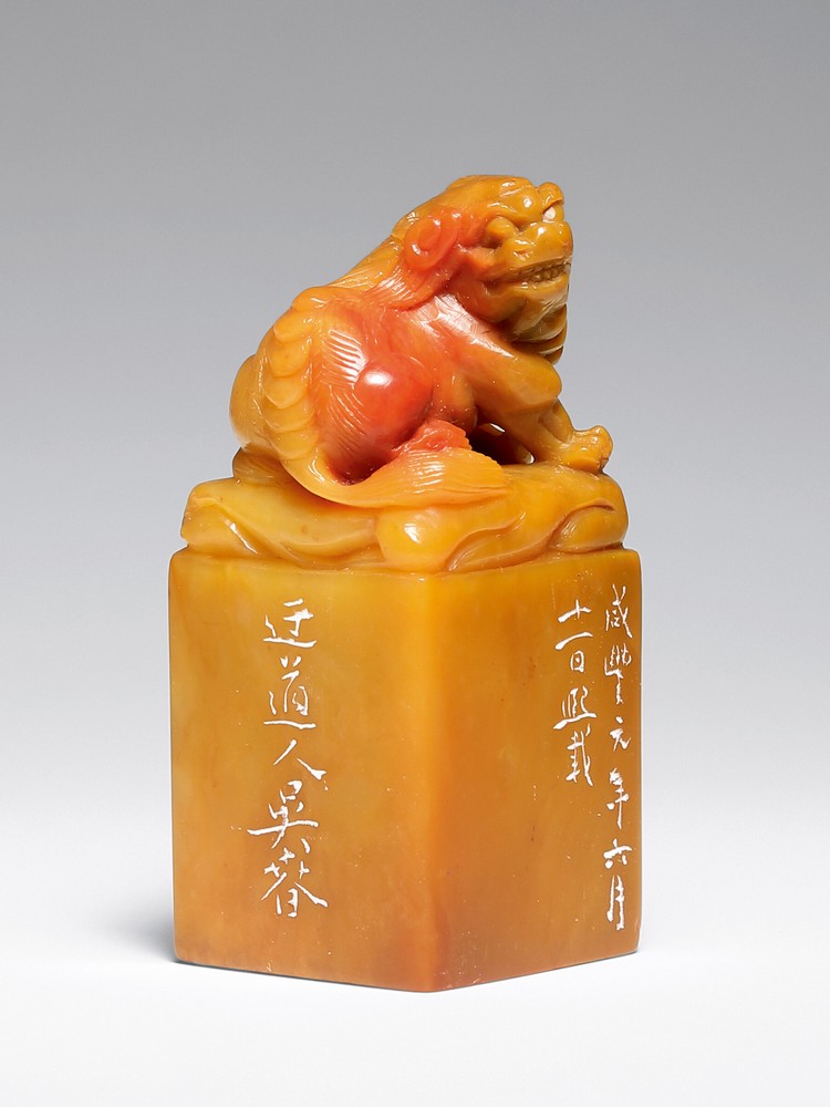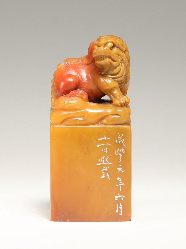 此印材质为寿山黄芙蓉石,色泽温润凝腻,呈淡黄色,质地通灵,为芙蓉石中的上品。钮雕为瑞兽,造型古朴浑厚,刀法简练,与印面文雅之气相得益彰。芙蓉石因其“似玉而非玉”的特质,历来为篆刻家所宝爱,此印以黄芙蓉为材,更显珍贵。