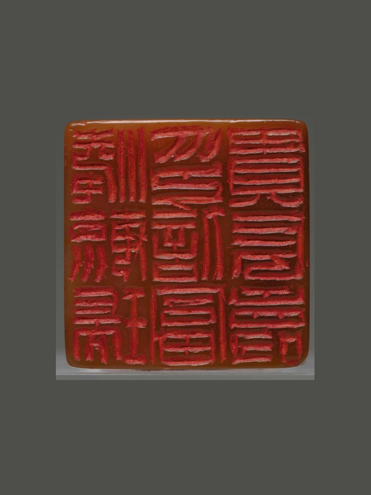 “淩毓瑞印信富贵长寿”一印,集吴让之盛年刀法之精妙、多字印布局之巧思、双款递藏之因缘、寿山美材之华贵于一体,是研究吴氏印风不可多得的实物标本。方寸之间,尽显一代宗师从容不迫的大家风范。