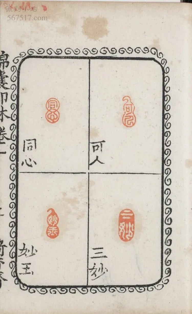 《锦囊印林》四卷是清代汪启淑辑录的一部珍贵印谱,成书于乾隆十九年(1754年),由汪氏香雪亭刊印。这部印谱以袖珍开本著称,是古代印谱中开本最小者,尺寸仅为7.2×5.3厘米。全书共四卷,收录了汪启淑所辑的印人作品236件,多为名人及友朋投赠的名号、诗词闲章。