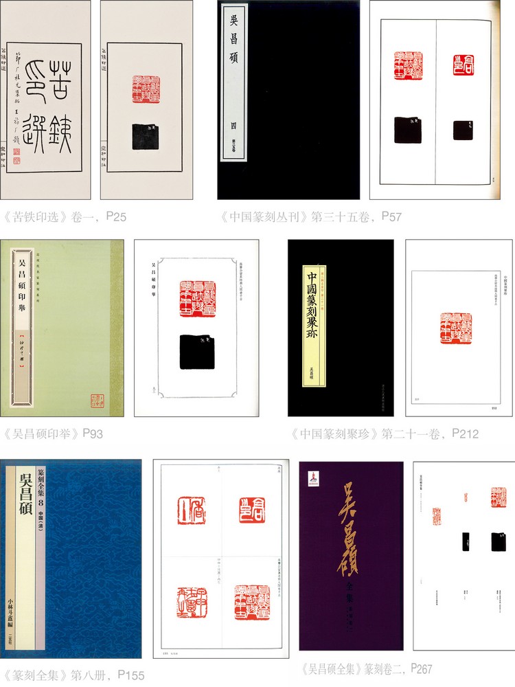 《篆刻全集》第八册,P155,日本二玄社刊行,2001年。《苦铁印选稿本》第三册,P25,陈康健辑,2003年。《吴昌硕印举》P93,上海书画出版社出版,2014年。《吴昌硕全集》篆刻卷二,P267,邹涛编,上海书画出版社出版,2014年。《中国篆刻聚珍》第二十一卷,P212,浙江人民美术出版社出版,2018年。