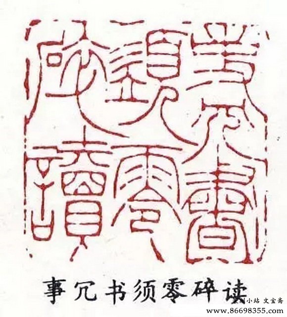 他从书体入手,把自己写篆书的风格,用之于刻印,这是一条正确的道路。他着意于汉篆,而变其体,这样字有渊源,章有古法,刀有笔意,自成一家。他的创造,并不从“怪”中追求形式,而是在我国篆刻传统上去求发展,所以,说他是“野狐禅”,是一种过深的偏见。