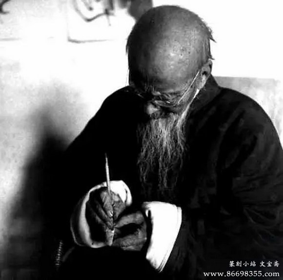 启功先生讲:“白石老人刻印很有趣。他把石头抵在桌子上,拿起石头近看看、远看看、先刻横,再刻竖,最后将笔画链接处小心收拾就了的”。启功先生说的很简单。