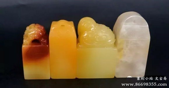 7、齐印大部分以青田为主,寿山为铺,青田最大的特点是:石脆而受刀,其刀刻效果与齐白石书法感觉最相称,最有代表性的作品。“草木未必无情”(图8)都是以青田老料为主。(附图:青田和寿山)
