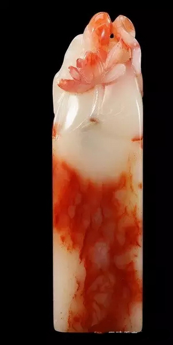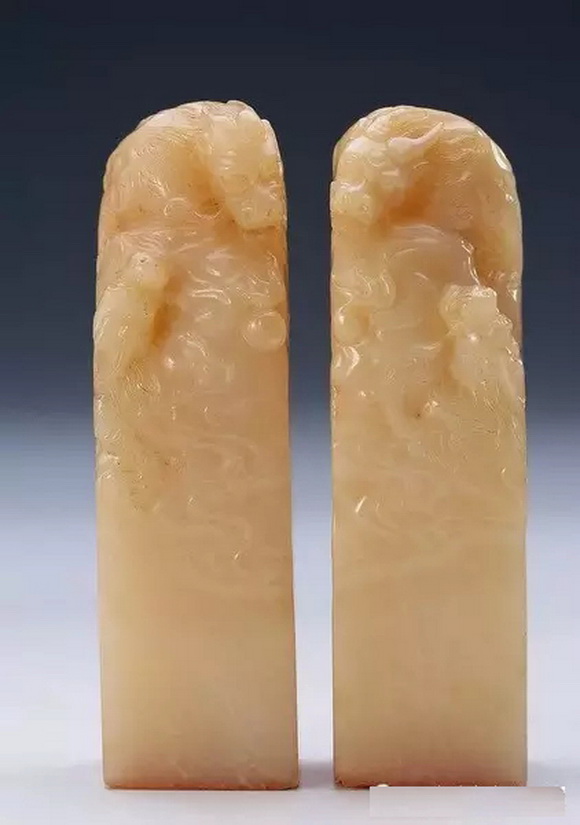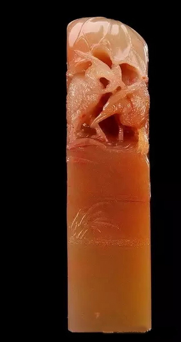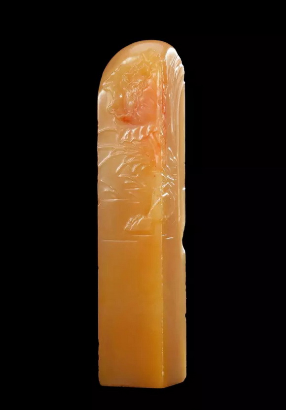 浮雕是在雕面凸起物像的一种雕刻技法,仅是从前面的方位表现物像的立体感。与圆雕相比较,只有“半爿”而已,所以又称“半爿雕”。要凸起物像,自然要剔除非物像的部分。根据剔除非物像部分的深浅程度,又分为高浮雕和浅浮雕。剔除得深者为高浮雕,反之为浅浮雕。寿山石印章钮头的浮雕一般都为浅浮雕,适于印台和印边的博古图纹雕刻。