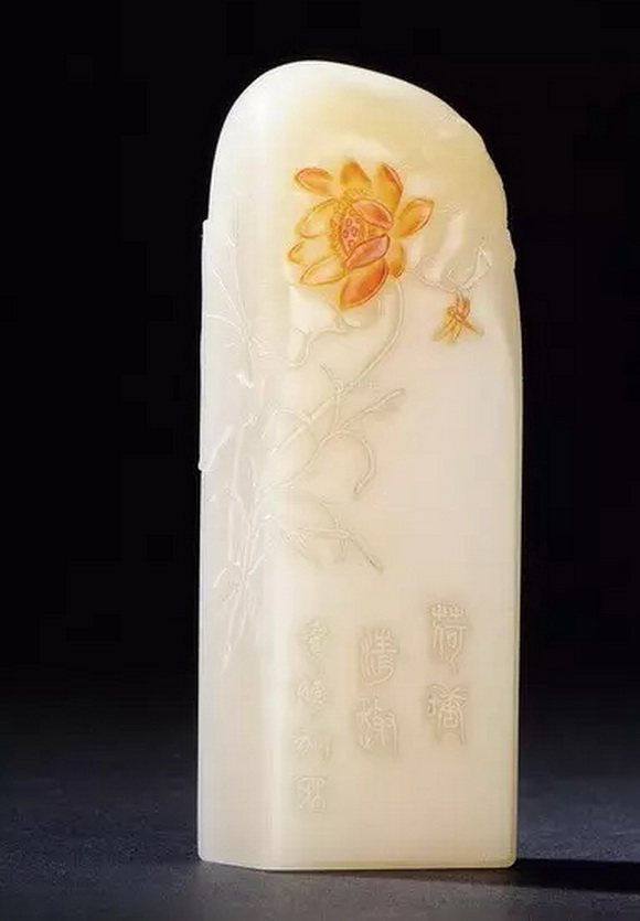 薄意源于瓷雕,明朝末年福州发现田黄石,后有“田黄易金三倍’’之说,其价值以铢计,因此不忍其石屑的损失,用薄意技法雕饰田黄石章是最适当的。金石家潘主兰说: “(薄意)最适合质佳而材小的田黄石、水晶石以及山坑冻石的艺术装饰,特别是自然章印台的装饰。如果是有皮的掘性灵石,或是有薄色层的优质灵石,其艺术效果,尤能发挥得淋漓尽致。”