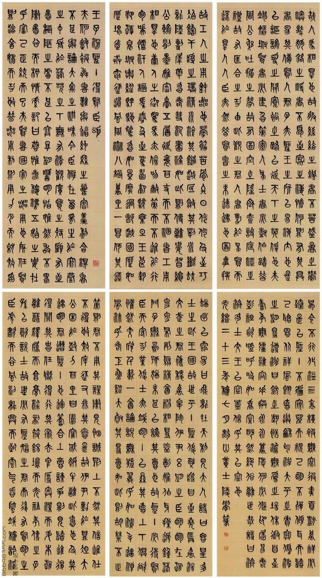 黄牧甫篆书六屏,王子渊圣主得贤臣颂,得以一窥全貌