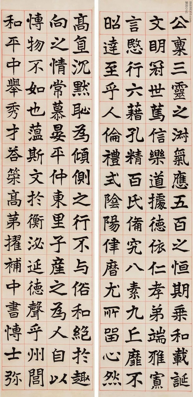 溥心畲楷书十二月令联,引经据典为溥心畬存世书法之最